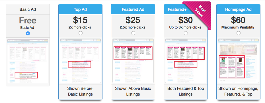 Featured Ads (shown in a special area at the top of the listings page) are $25